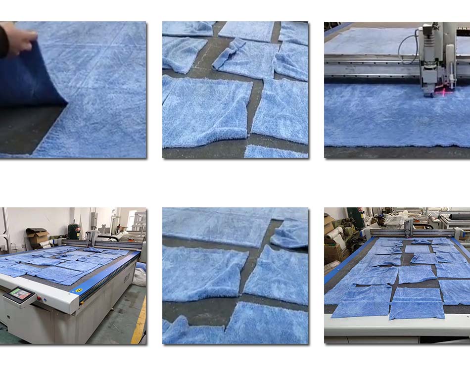 隨著生活品質不斷提高,毛巾行業不斷的發展,不管是在材質上還是在裁剪工藝上要求也是越來越高。為了能夠針對各類材質的毛巾進行快速有效的切割,愛邦推出全自動電腦數控毛巾裁切機。刀片切割邊緣平滑整齊,且環保無異味,不出現糊邊等現象!